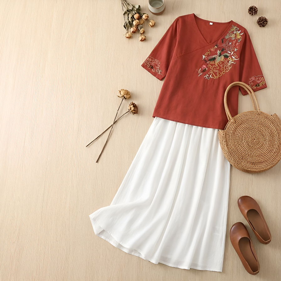 ● レトロ刺繍デザインが上品で可愛らしさを演出し、日常コーデに華やかさをプラスします。