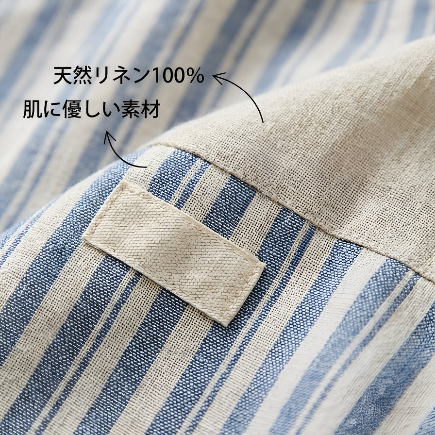 ● コットンリネン素材を使用し、通気性と吸湿性に優れた快適な着心地を実現します。