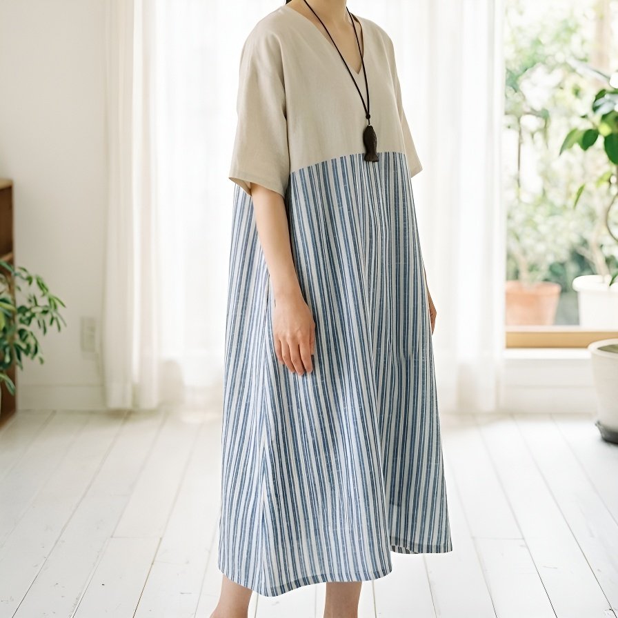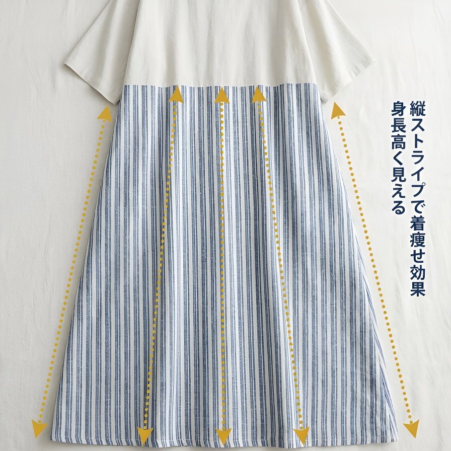 コットンリネンストライプルーズワンピース